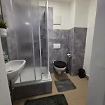 Die Badezimmer verfügen über eine getrennte Toilette und eine Dusche sowie Badelaken und Handtücher.